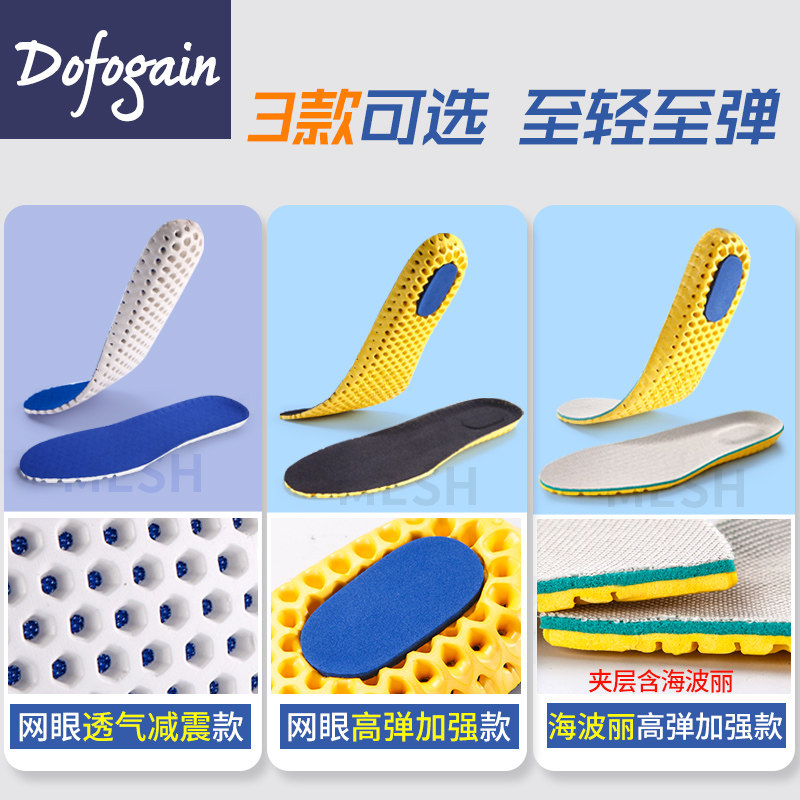 3 Twin Sports Insoles Men Breathable Sweat-absorbing Deodorant Anti-Shock-Thickened Basketball Running Female Elastic Insole Summer