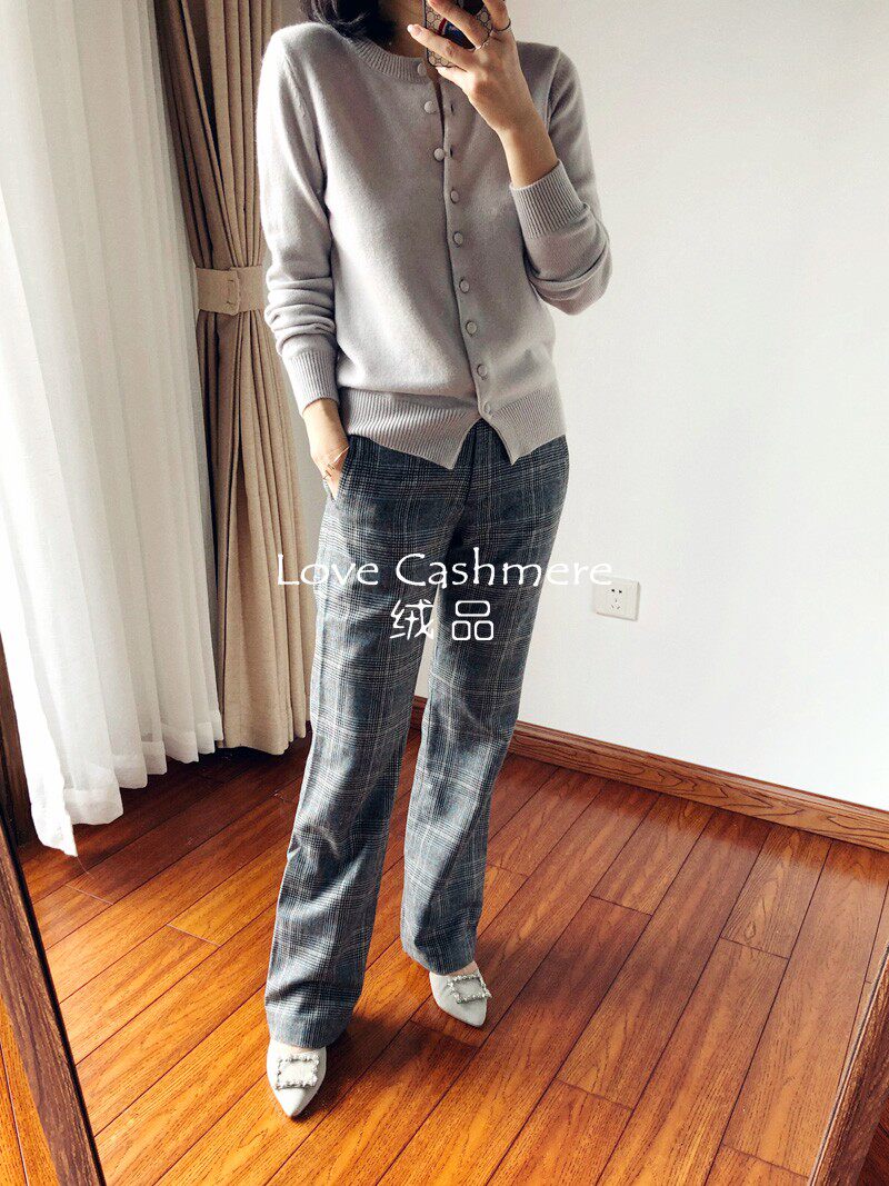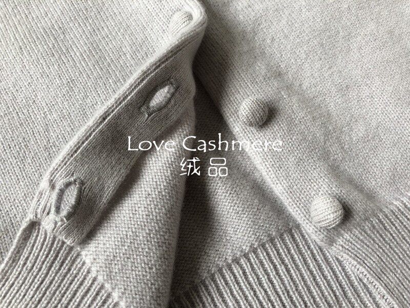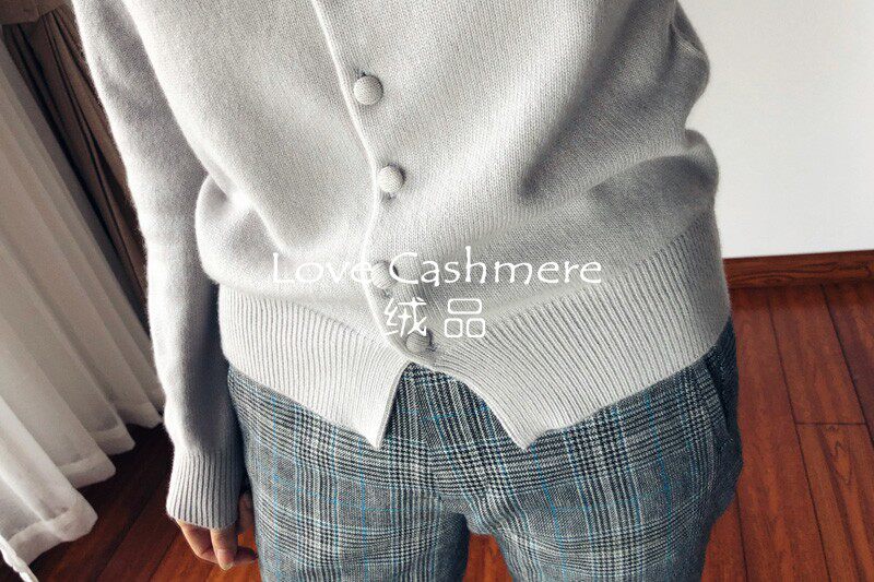 Velvet Custom Temperament Silver Gray Buttoned Round Neck Knitted Sweater Cardigan Commuting Style 100% Pure Cashmere Sweater