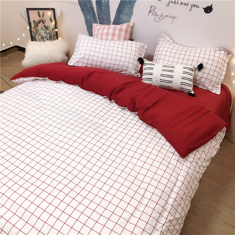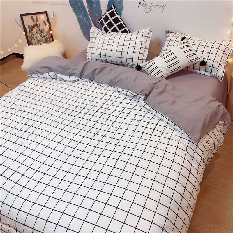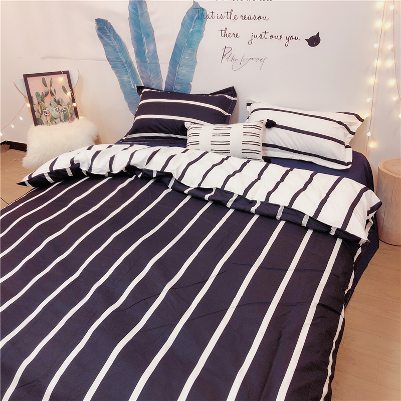 Nordic minimalist ins style striped bed four-piece small fresh student dormitory bed sheet quilt cover three-piece