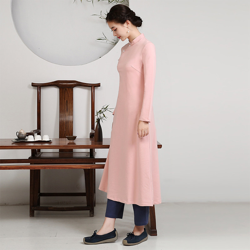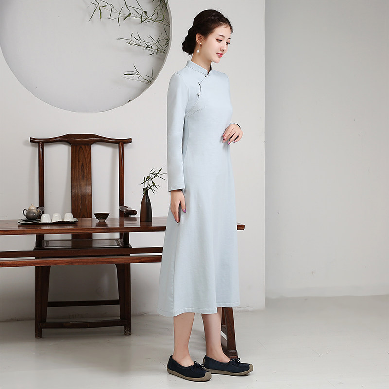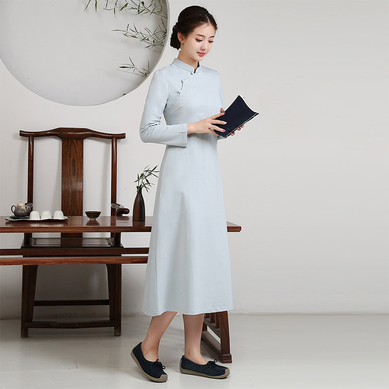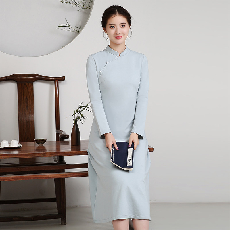 Improved cheongsam skirt modern style dress women's daily large size fat mm spring and autumn long retro temperament 597