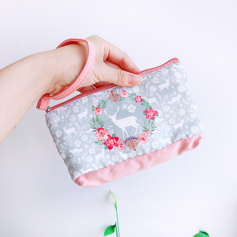 Mobile phone bag women 2022 new wave Han version personality cartoon canvas art casual carry long version wrist bag zero money bag
