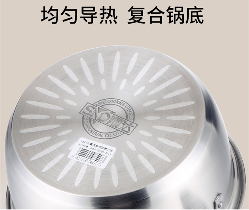 Shunda milk pot stainless steel soup pot thickened single handle cooking noodle hot milk pot large capacity 18cm induction cooker gas universal