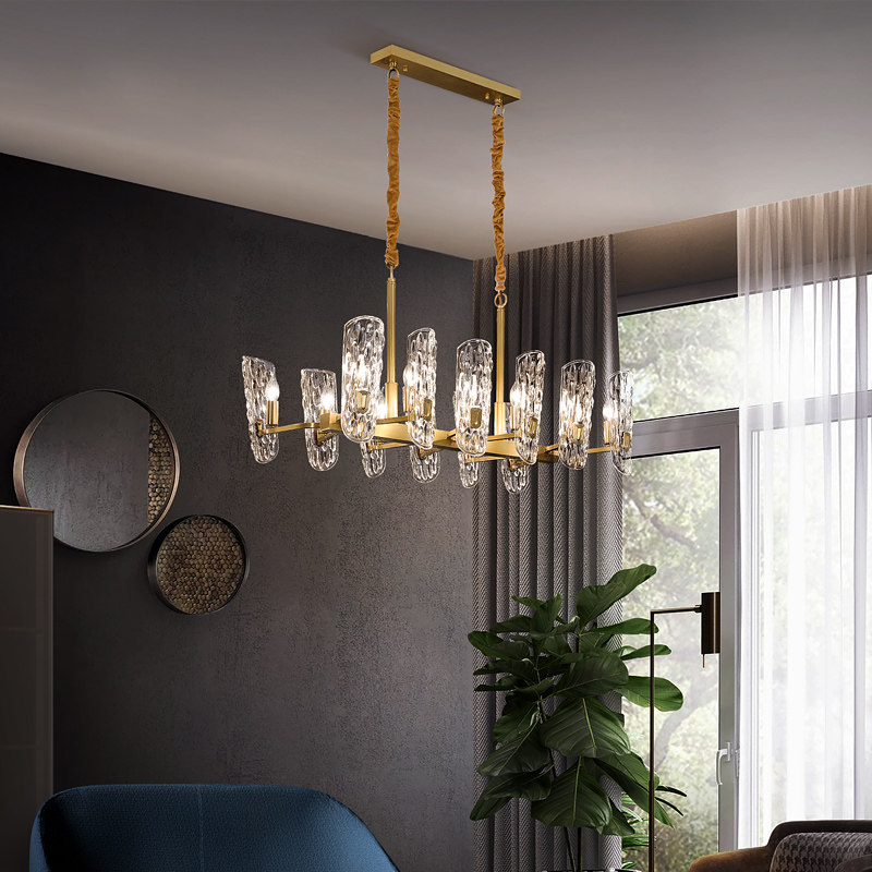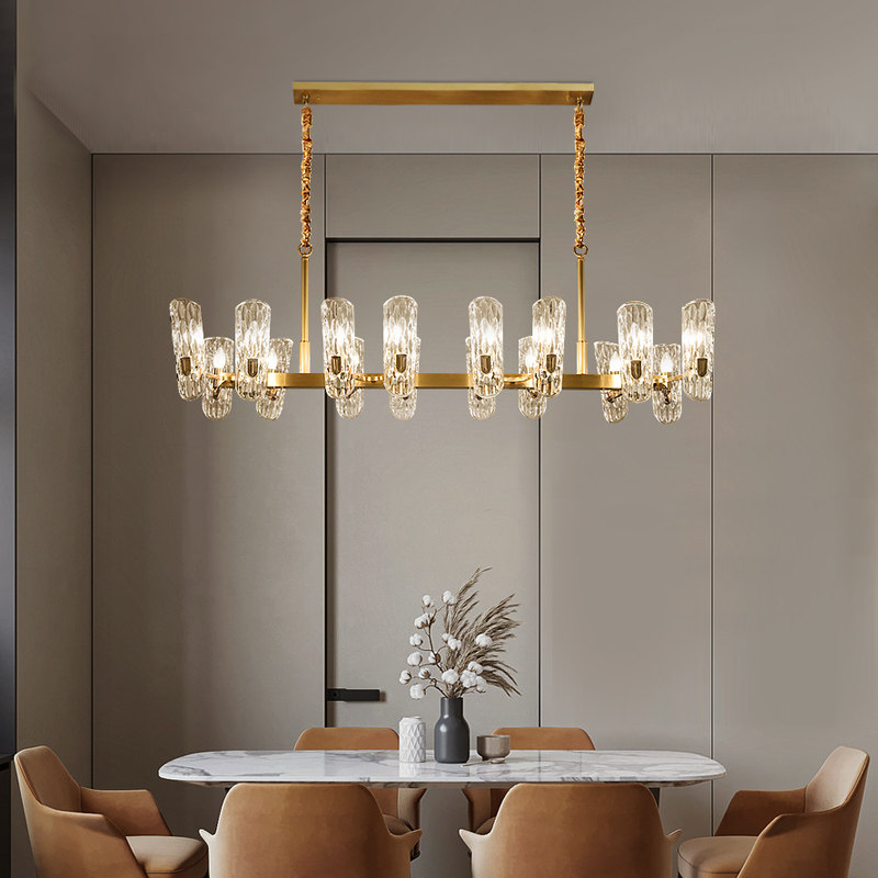 World Crown light luxury chandelier dining room lamp all copper crystal post modern simple atmosphere American copper lamp European dining room chandelier