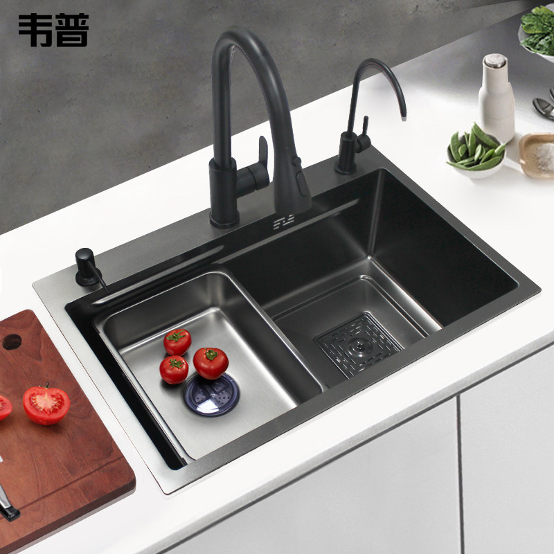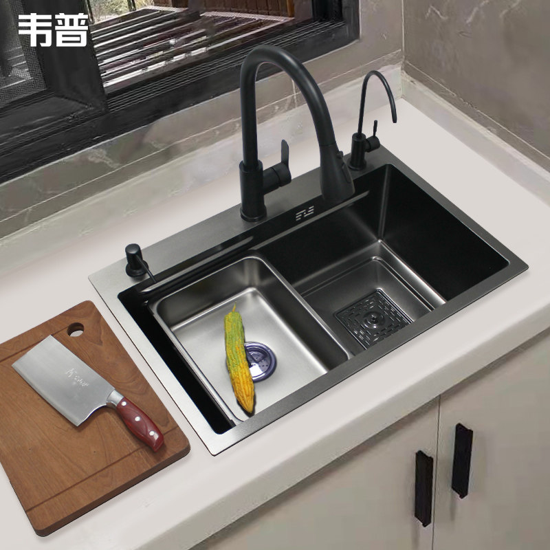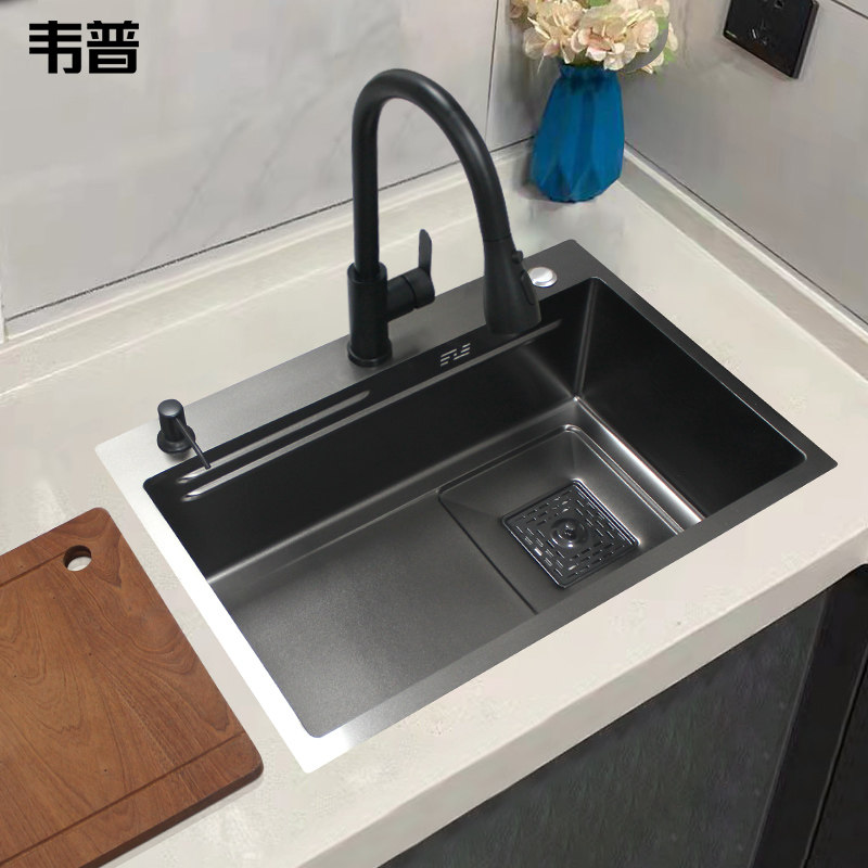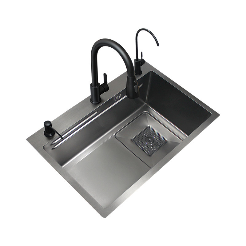 6545 Black stepped sink with drain (double rib) 6545 Black stepped sink L12 pull-out faucet Clean water faucet (double rib) 6545 Black stepped sink L12