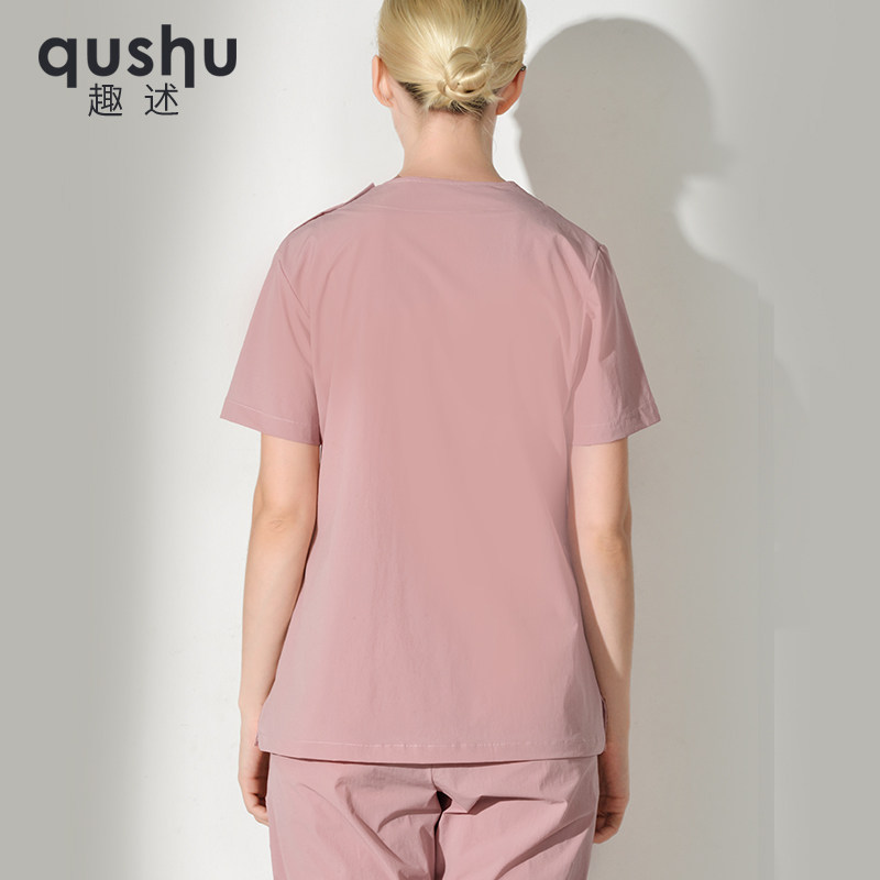 Handwashing Clothes Two-piece Style Suit Woman Short Sleeve Brushed Handcoat Dental Beautician Oral Pet Hospital Work Suit Surgery Clothing