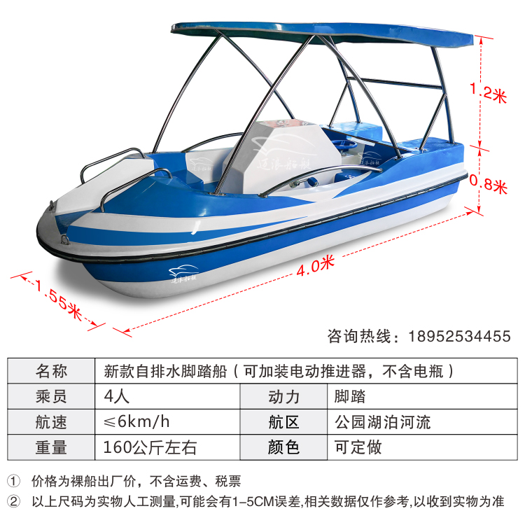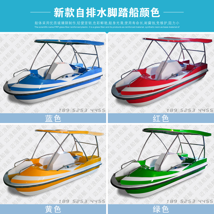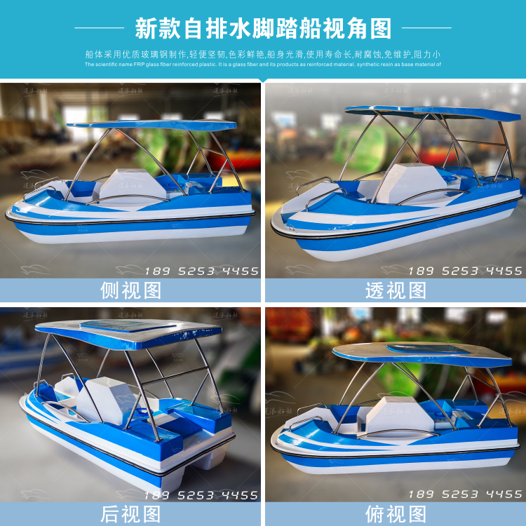 New self-draining pedal boat park cruise 4-5 people electric leisure sightseeing FIBERGLAS cruise fishing boat