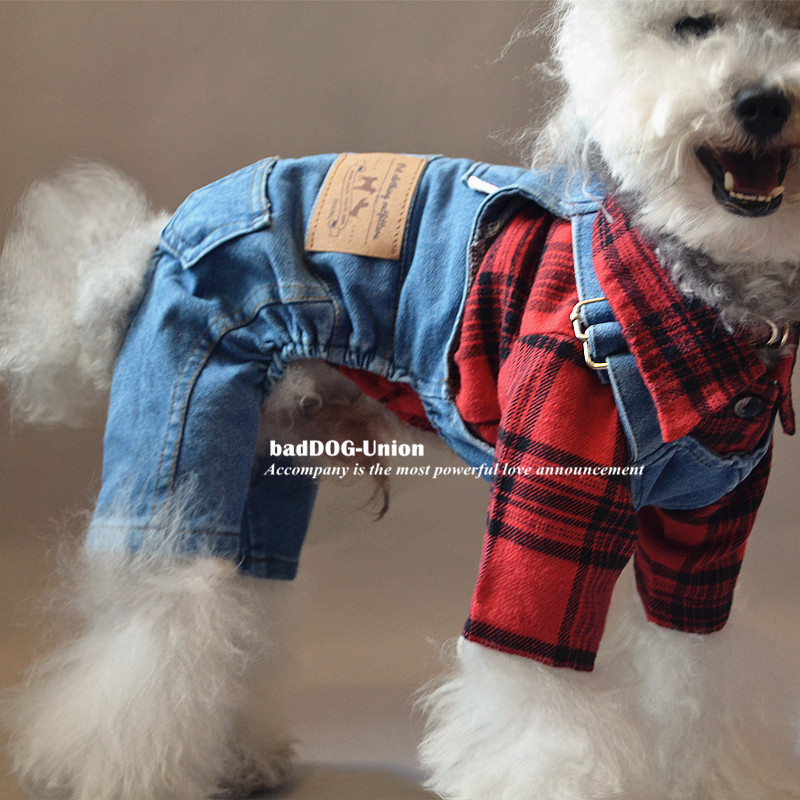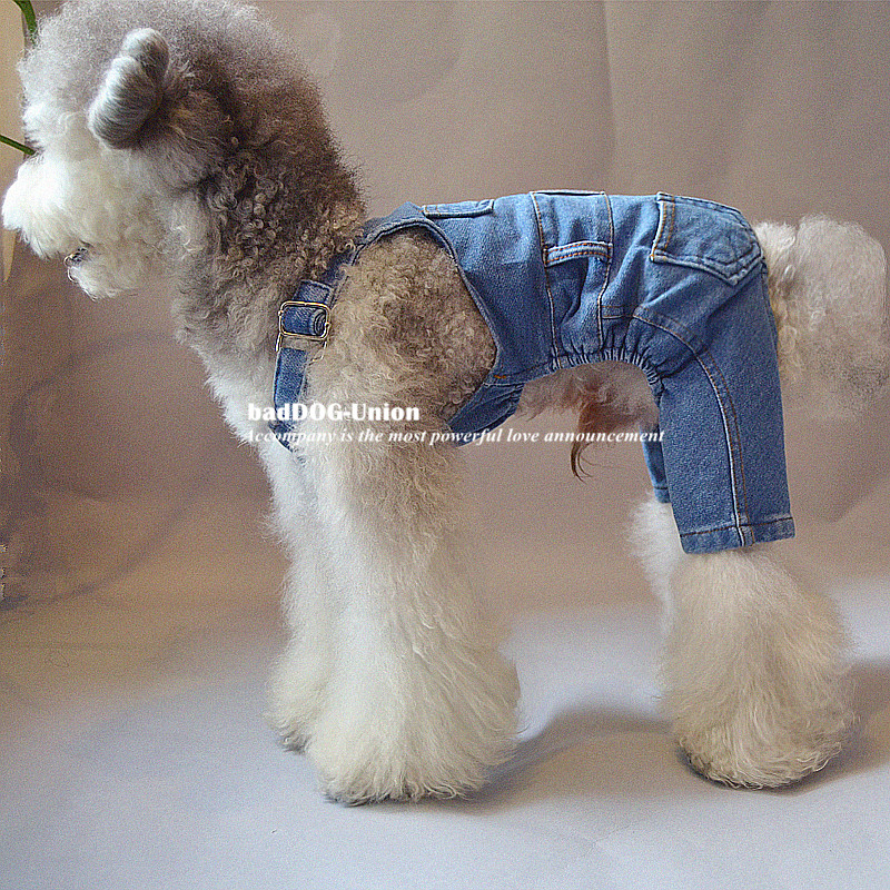Pet autumn and winter cowboy baby bag pants cotton elastic teddy Bichon Schnauzer clothes dog cat baby bag pants
