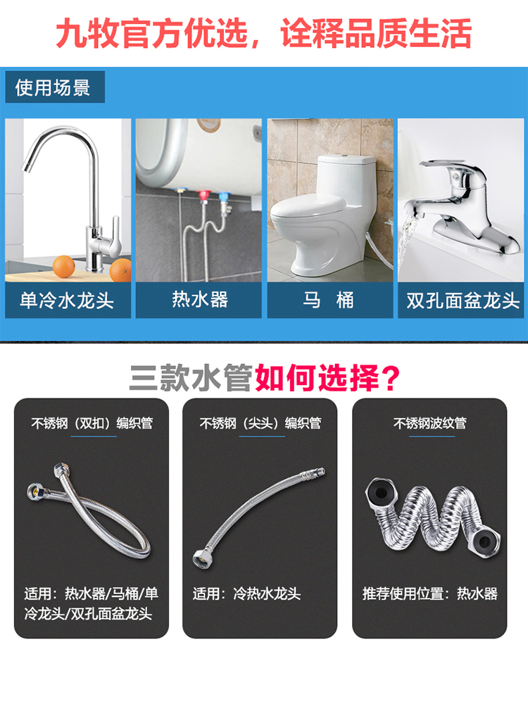 Nine Shepherd Stainless Steel Metal Braided Hose Water Pipe Toilet Water Heater Tap Hot And Cold Water Inlet Pipe Household Pipe