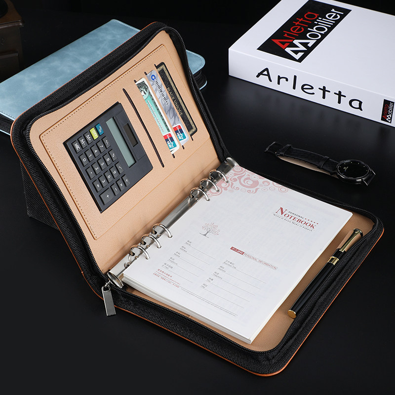 Loose-leaf A5 notebook business multi-function manager clip B5 creative zipper bag with calculator hand account notepad sub-office manager bag real estate information booklet contract sales clip custom LOGO