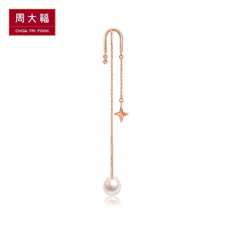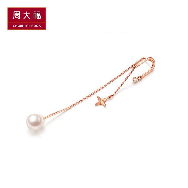 Chow Tai Fook jewelry fashion personality 18K gold diamond pearl ear wire (single) T75244 preferred good goods