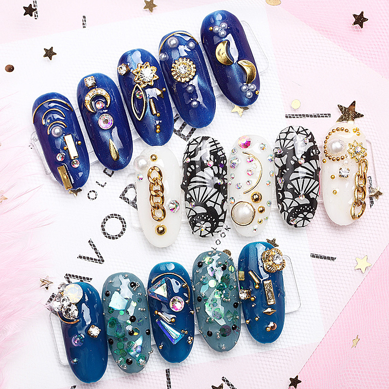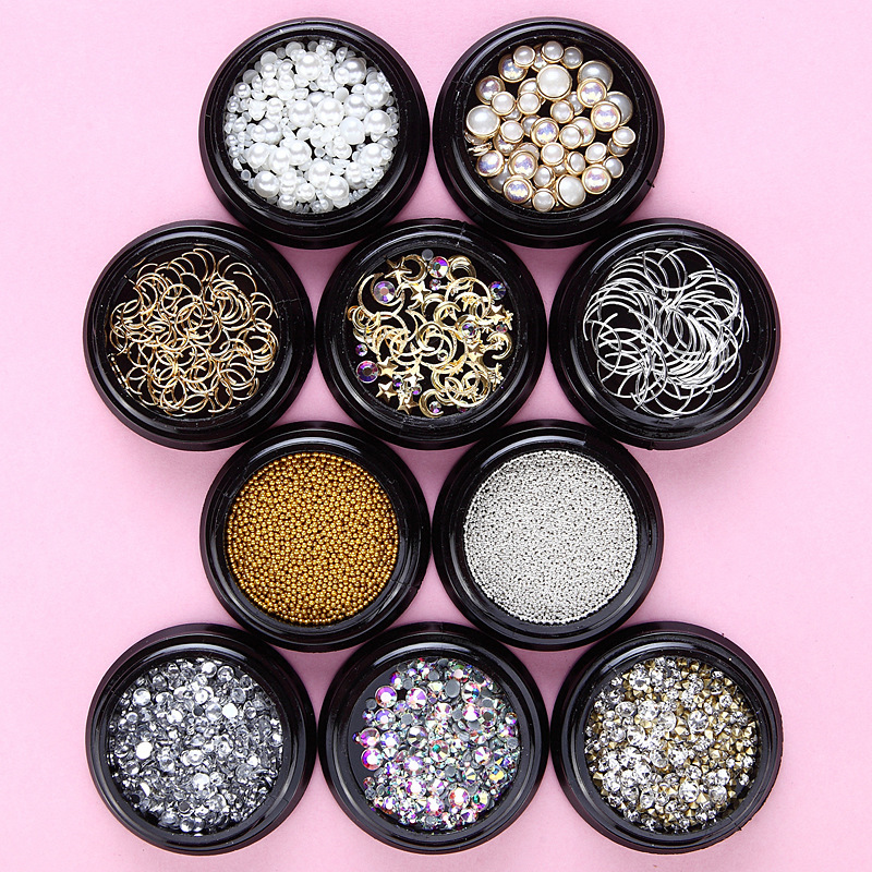 Nail ornaments Japanese star Nail Fantasy Mermaid Pearl AB water drilling rivets metal drilling edge pearls