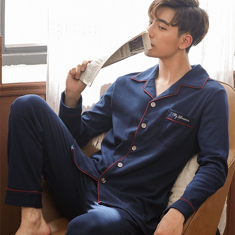 Sleepwear Men's Spring Autumn Long Sleeves Pure Cotton Mid Youth Fashion Whole Cotton Big Code Men's Sweatshirt Winter Korean Version Home Jacket-Taobao