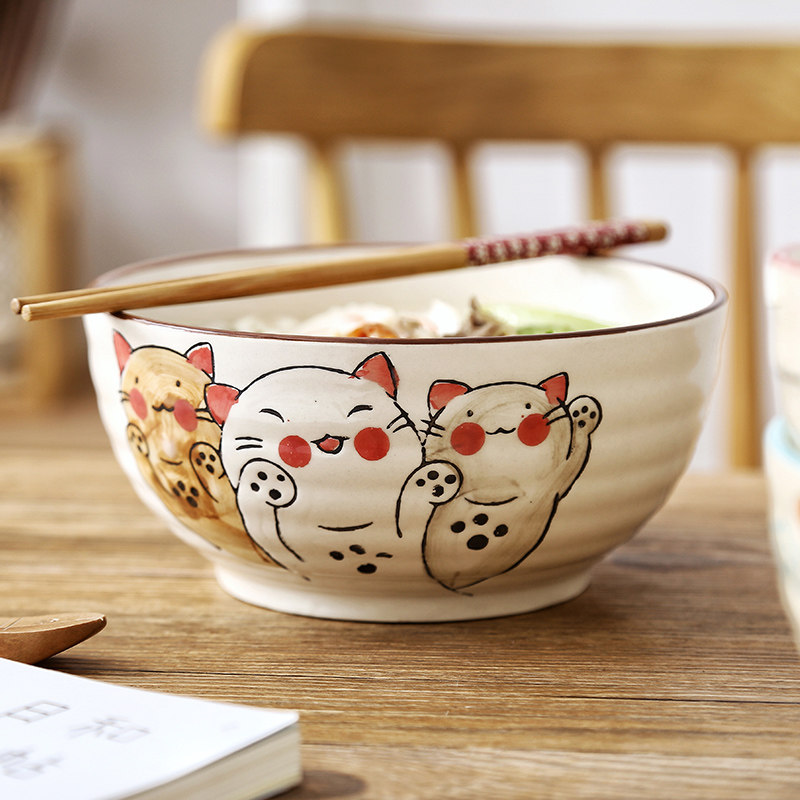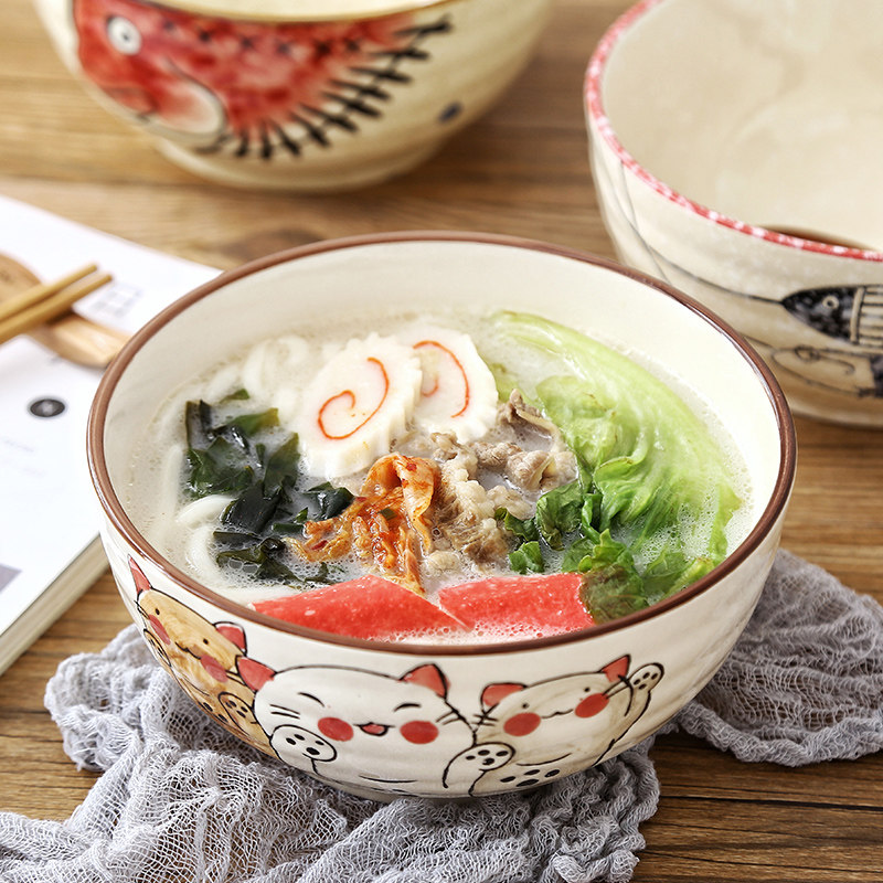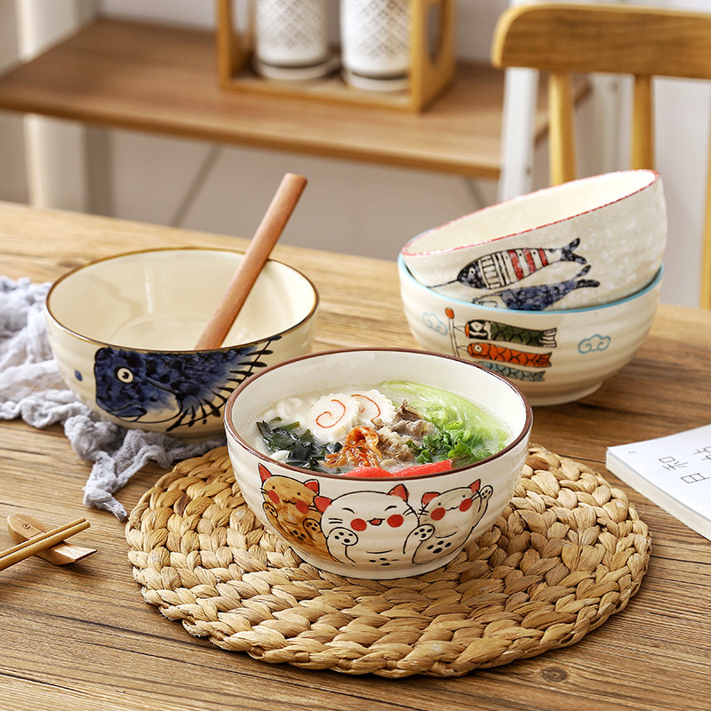 7 inch wave Pisces thread bowl 7 inch willow fish thread bowl 7 inch blue big head fish thread bowl 7 inch red Big Head fish thread bowl single Lucky Cat 8 5 inch soup bowl single blue big head fish 8 5 English