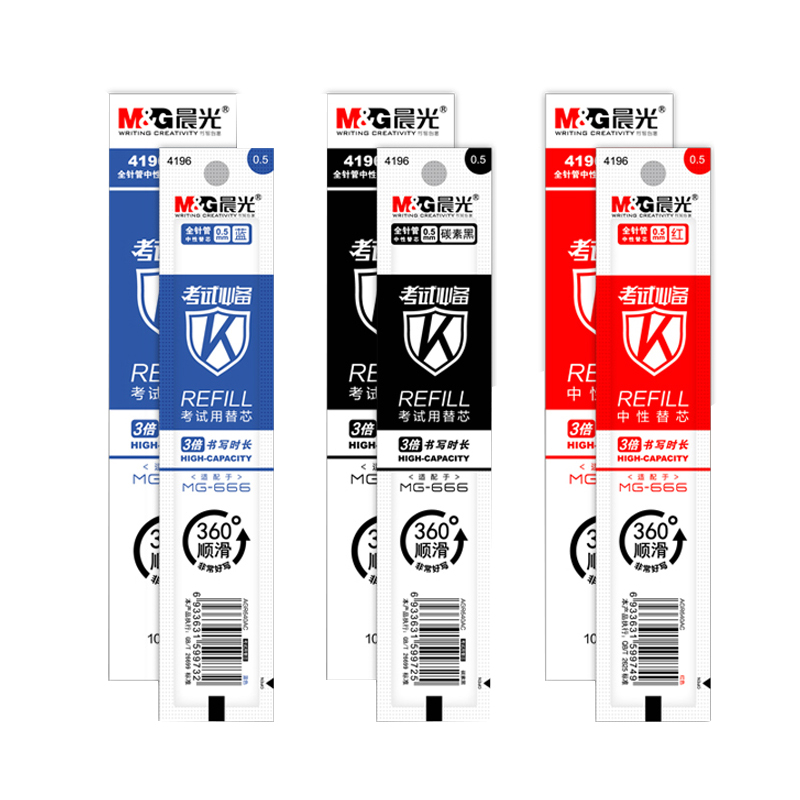 Morning light 4196 refill student business refill black 0 5 water-based pen refill MG-666 special neutral refill box of 10 mixed colors