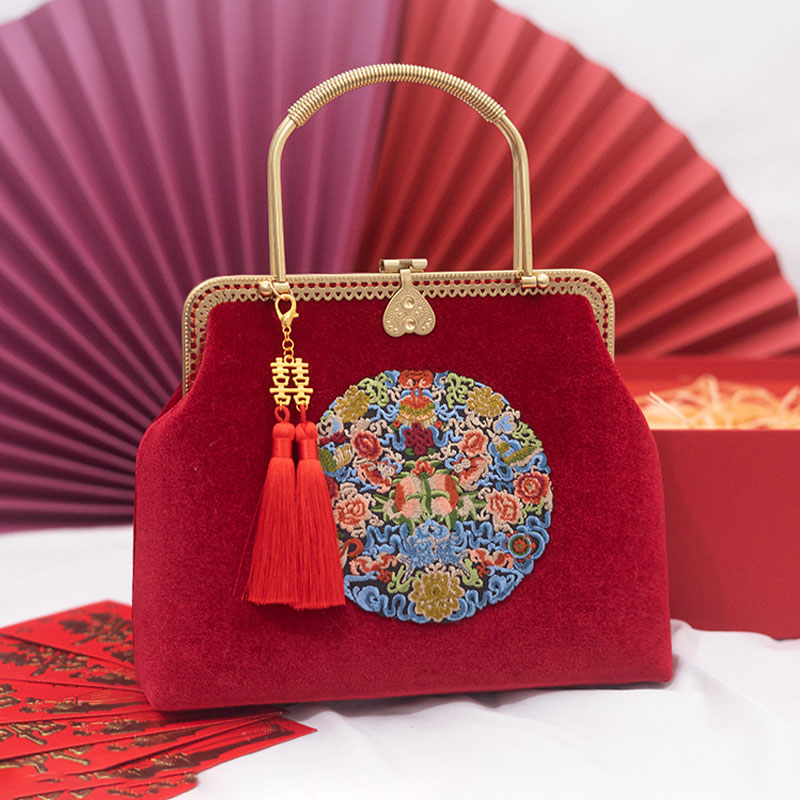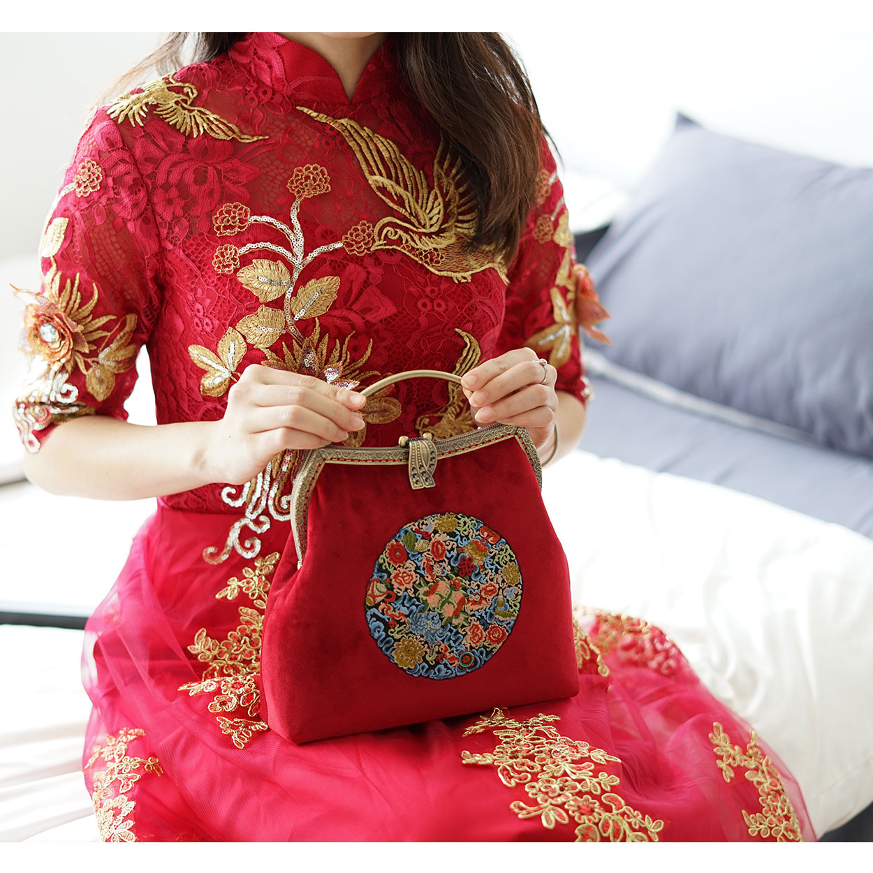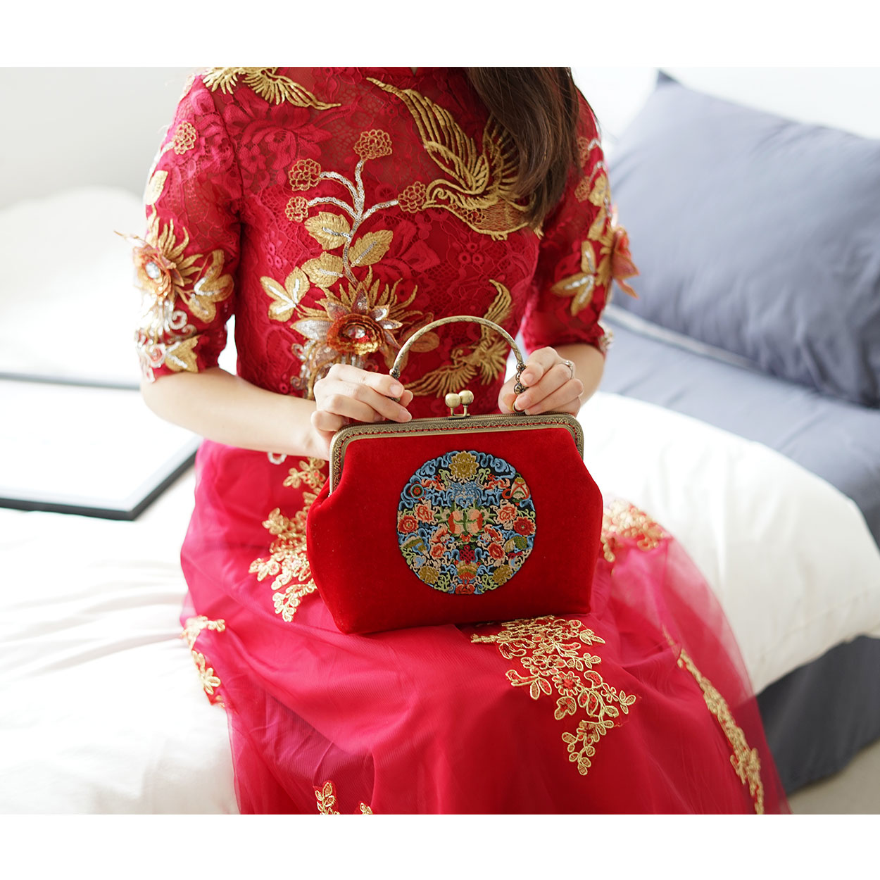 2020 new Chinese bridal bag big red velvet embroidered bird delicate with antique hand diagonal cross wedding bag women's bag