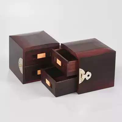 Big leaf rosewood log old material craftsman Mahogany jewelry box Chinese retro lock storage box Solid wood carving