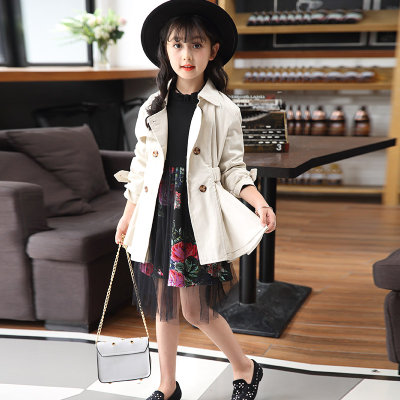 Girls'dress and children's coat middle and long - edition Spring and Autumn 2018 new model for the big girl Yang Han Edition autumn clothing