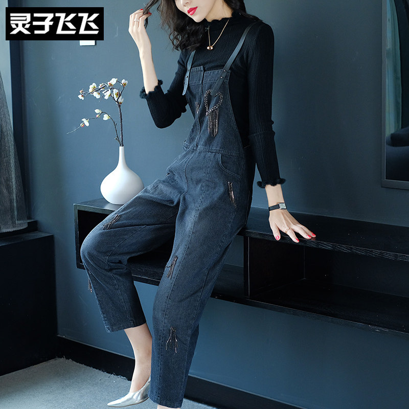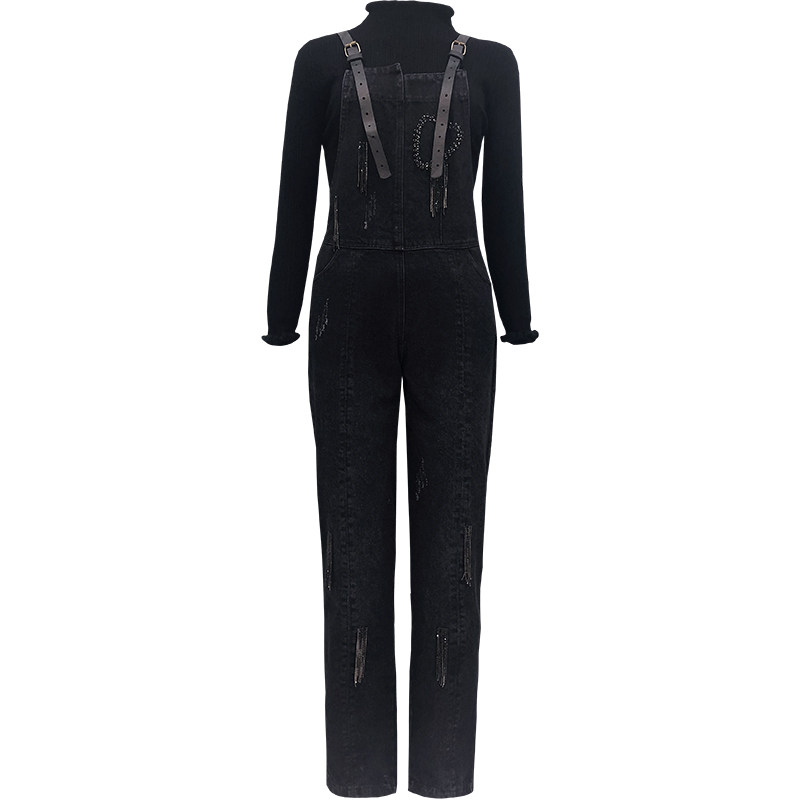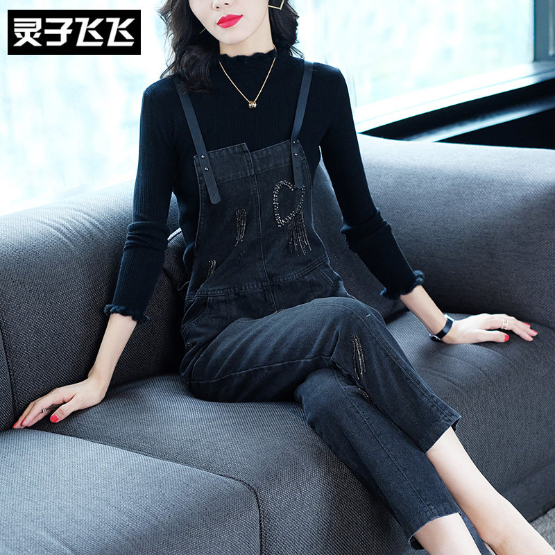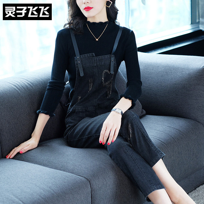 2018 Autumn Winter New Women Academy Wind Black Long Sleeves Inner Lap for a Casual Limbo-Baby Bag Jeans Suit