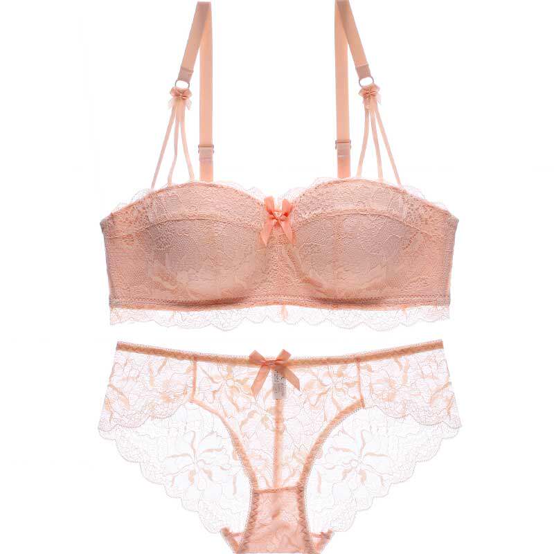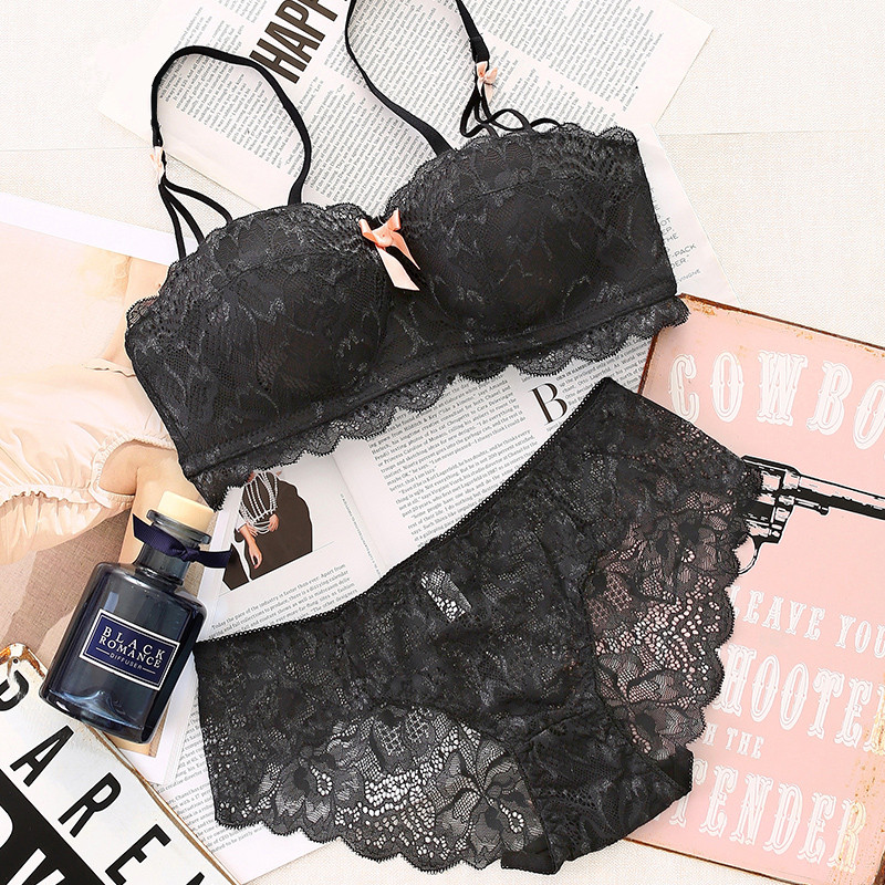 Sexy lace half cup thickened underwear set incognito small-breasted underwear female adjustment type closed pair of breasts on the trust bra