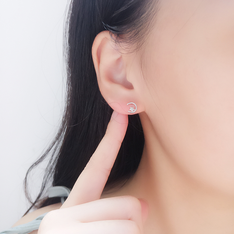 Ting Xiangkai S925 sterling silver star moon ear pin female temperament personality wild earrings creative trendy simple
