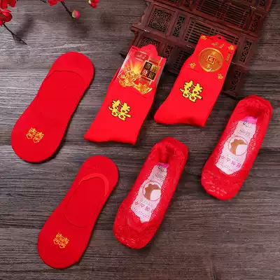 Wedding couple red socks a pair of women's family items happy word preparation wedding red socks wedding supplies