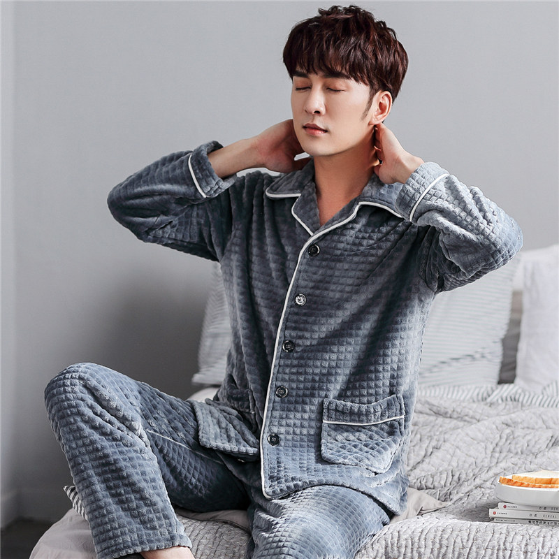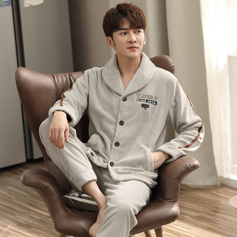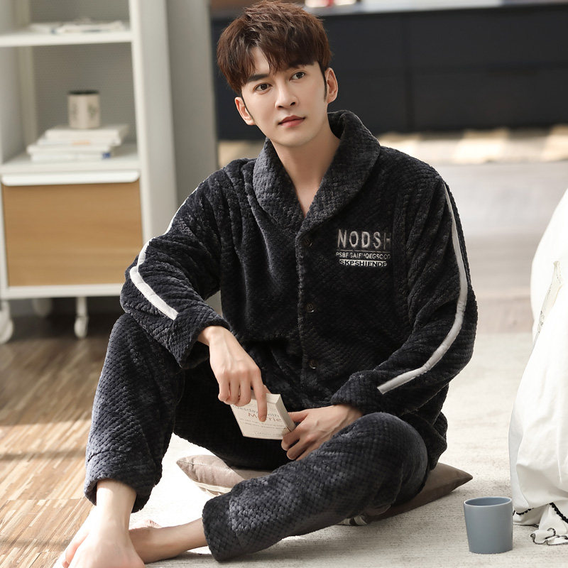 Coral velvet pajamas thickened heating sports men's flannel home clothing autumn winter suit