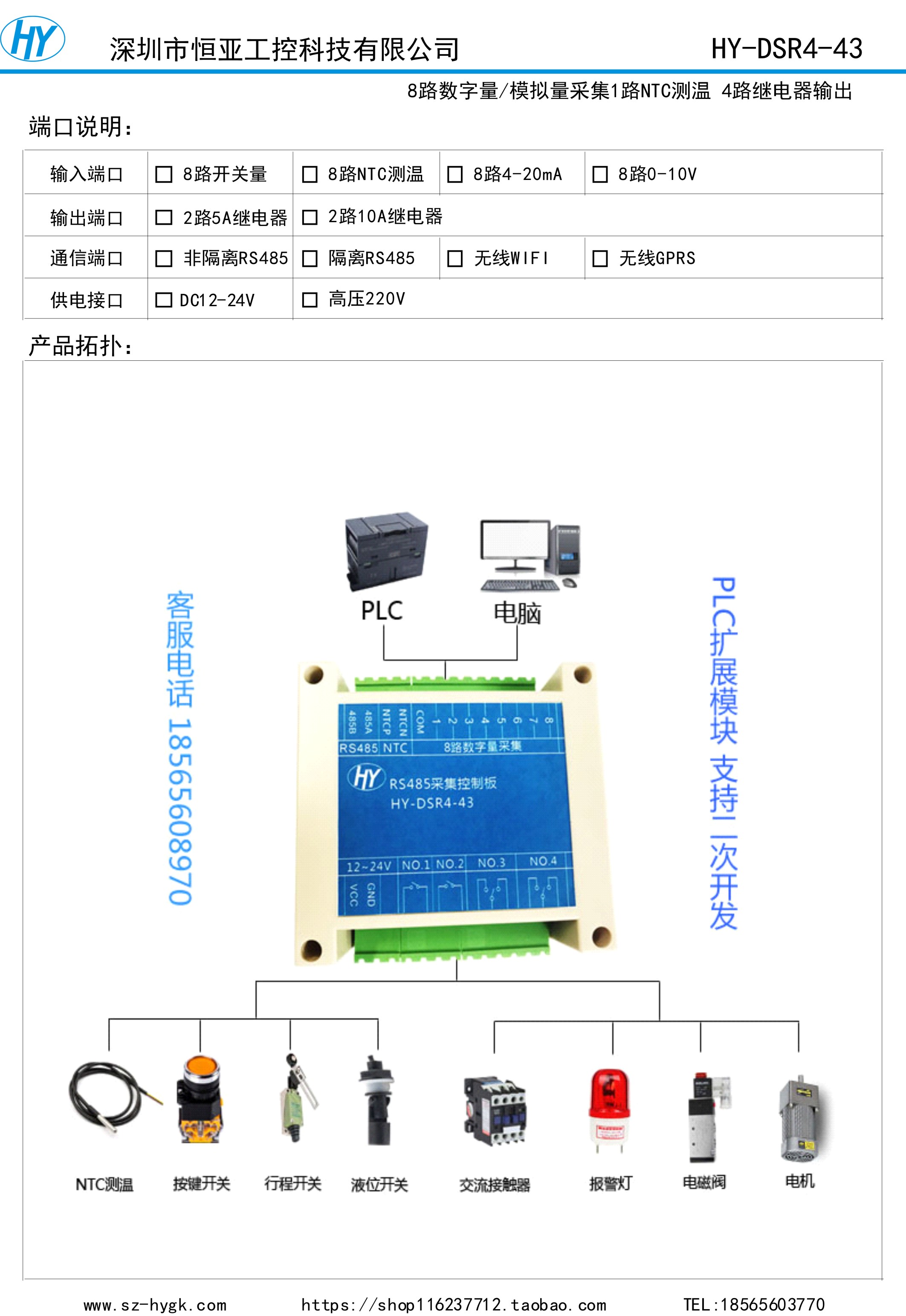 Isolated RS485 industrial relay 8-channel digital analog acquisition serial port ModbusRTU communication PLC expansion