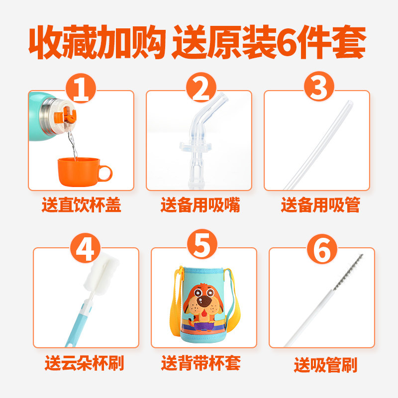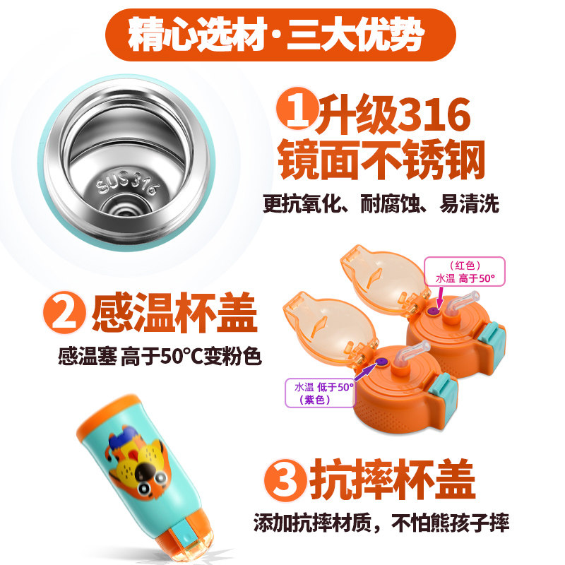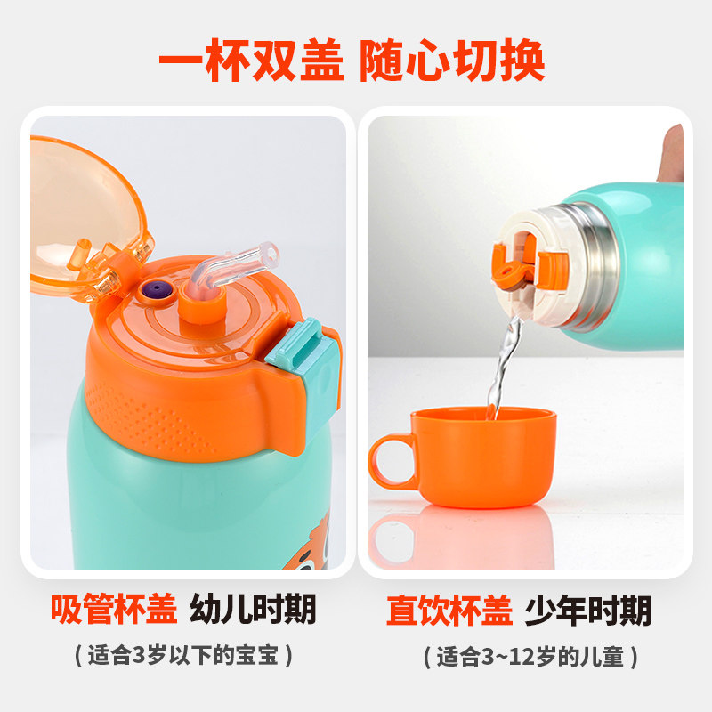 Seigsee Children's insulated cup with straw anti-fall dual-use male and female elementary school children's kindergarten water glass stainless steel kettle-Taobao