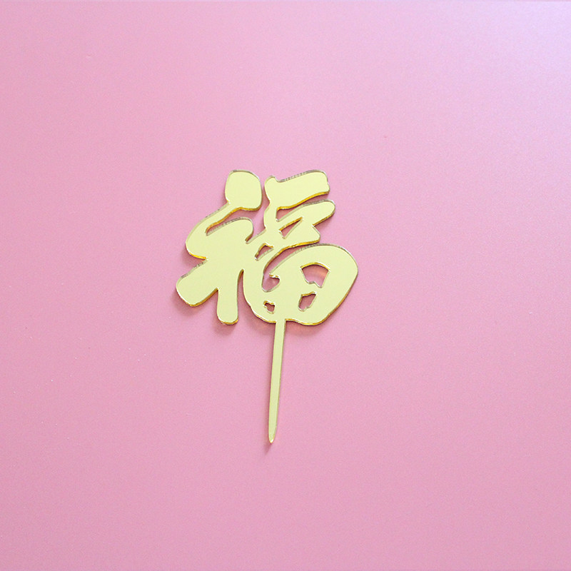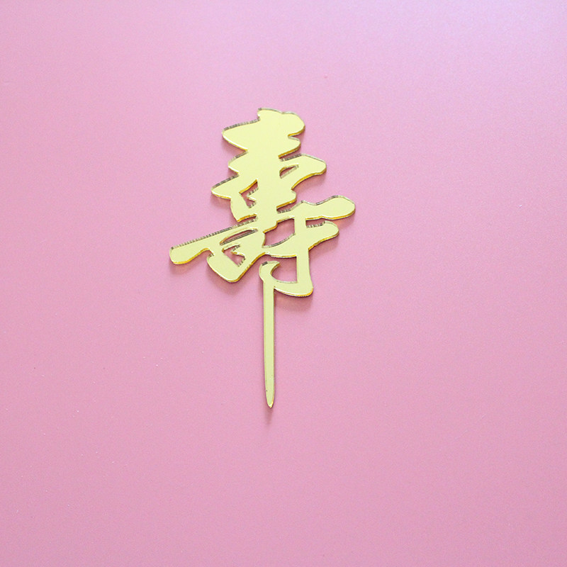 10 packs of acrylic red blessing character longevity character card insert creative cake decoration plug-in gold blessing character longevity character