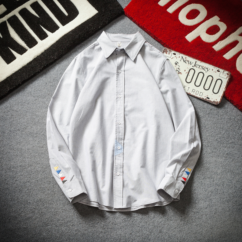 Autumn handsome slim-fit shirt men's top Large size sports long-sleeved white shirt Korean version of the trend men's coat