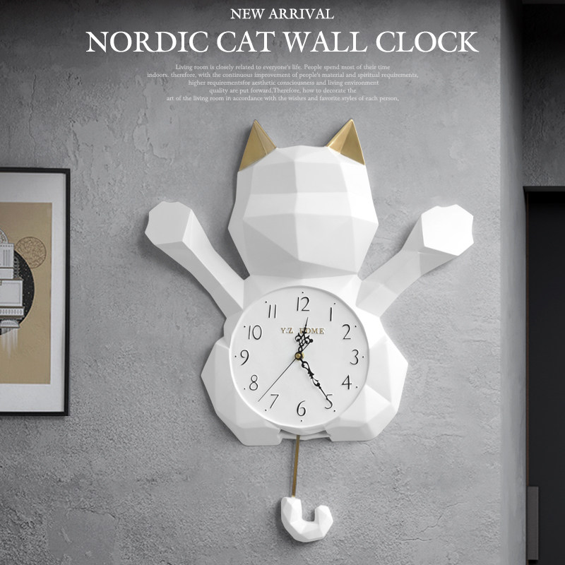 Nordic minimalist Merchants Cat Clock Wall Decoration Creative Stereo Muted Watch Wall Decoration Living Room Bedroom Dining Room Hung Timepiece