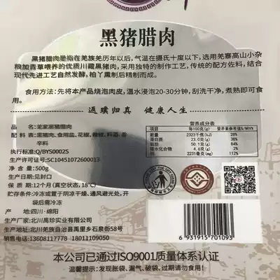 Yuzhen Sichuan specialty Beichuan soil black pig old bacon farm food homemade Cypress firewood smoked meat 500gx3 bags