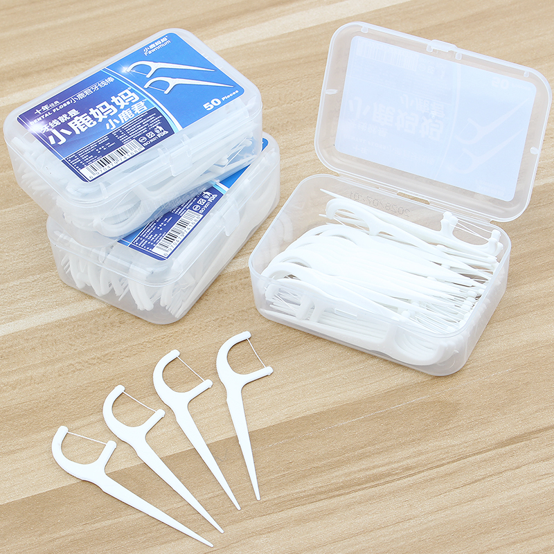 Deer mother high-strength dental floss stick dental care flossing interdental arch toothpick flat line 50 boxes