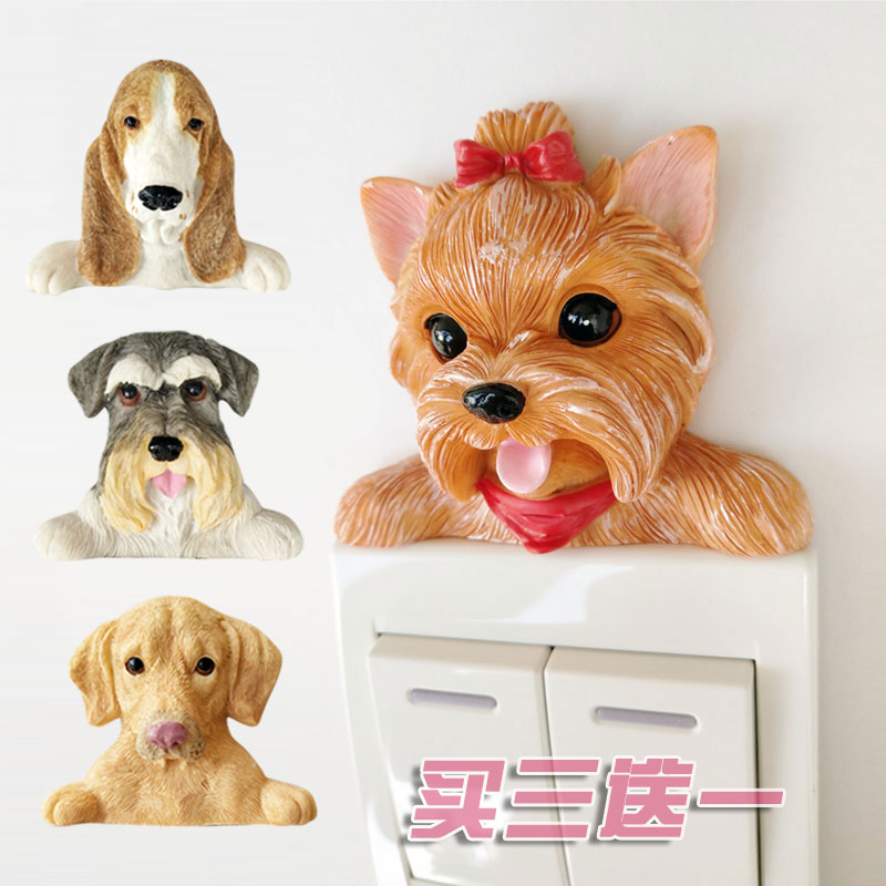 Switch stickers wall stickers creative cartoon animals cute dog socket panel protective cover bedroom decoration stickers 3d stereo