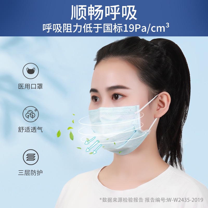 20pcs Thick Disposable 3 Layer Nonwoven Melt Spray Breathable Blue Medical Mask Separate Pack