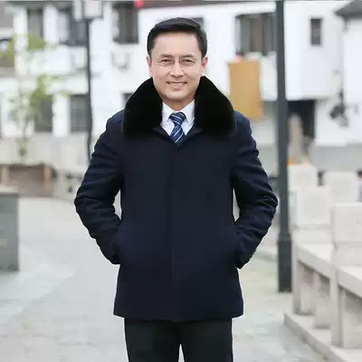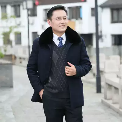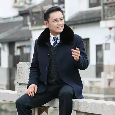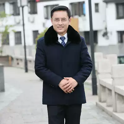 Autumn and winter middle-aged men's jacket woolen coat plus velvet thickened woolen woolen woolen jacket Father's