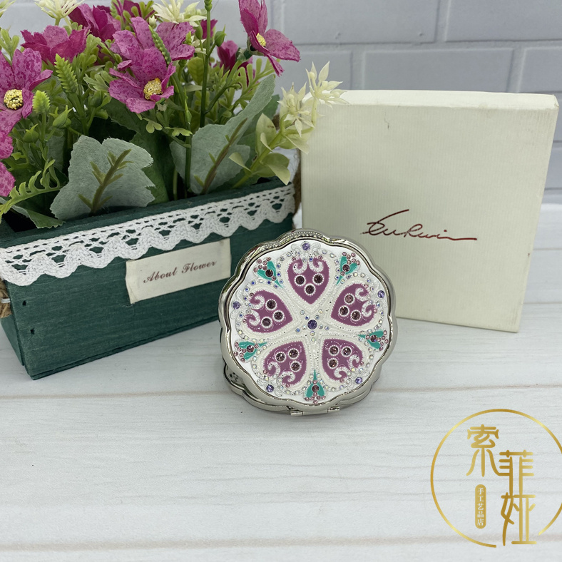 Xinjiang customs imitation Russian make-up mirror Ethnic featured handicraft portable double-sided folding mirror 9896