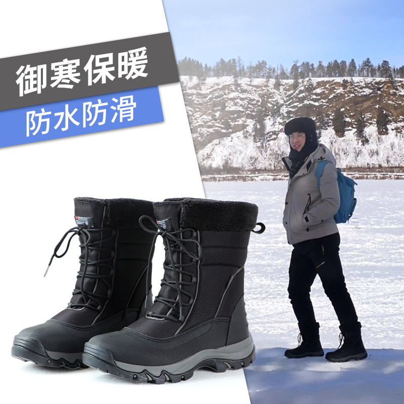 Winter New Snowy Cotton Anti-Chill Warm Waterproof Anti-Slip Outdoor Snowy Boots Men Ski Mountaineering Northeast Cotton Shoes Thickened