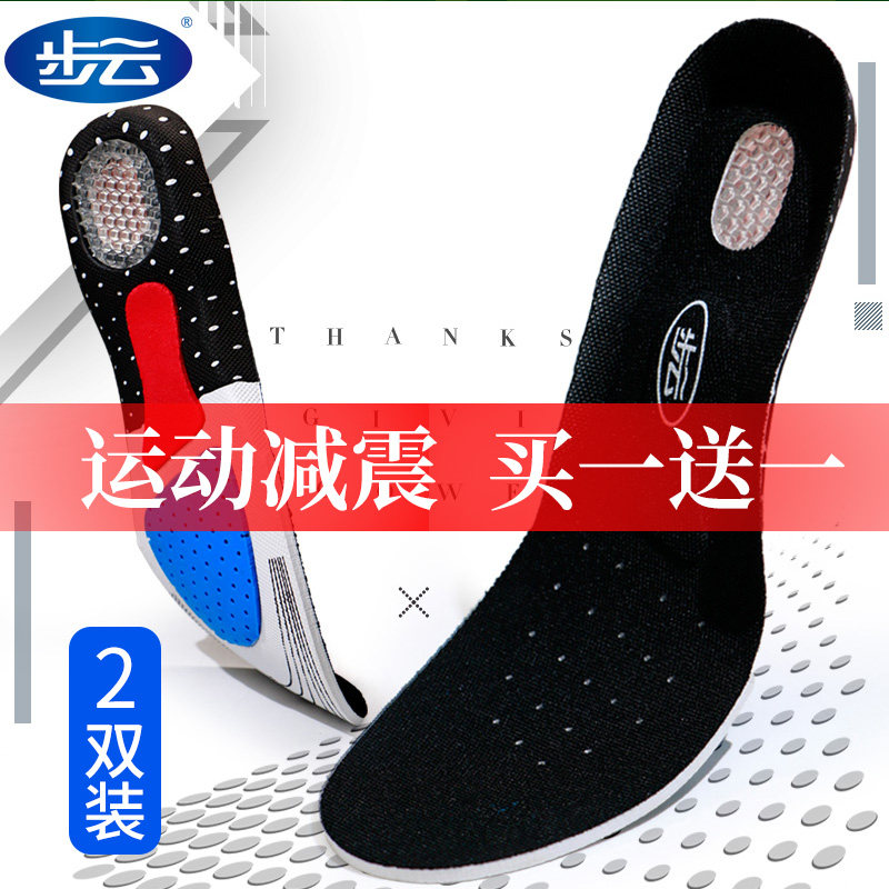 Buyun sports shoes cushion shock absorption sweat absorption deodorant breathable men's and women's air cushion thickened soft running non-slip high elastic silicone