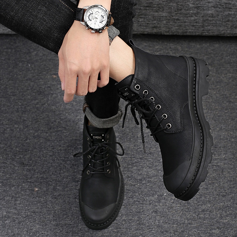 2022 new Martin boots British men's shoes tooling boots plus velvet mid-tube leather boots autumn and winter black short boots trend