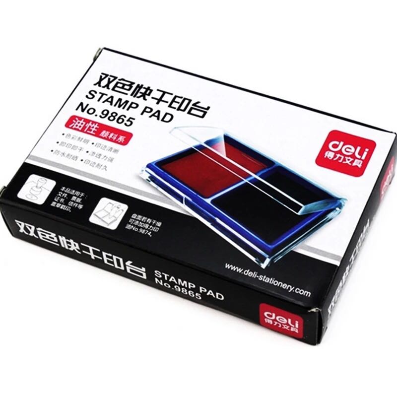 Deli 9865 two-color fast-drying printing pad printing mud red blue financial office one box of two colors