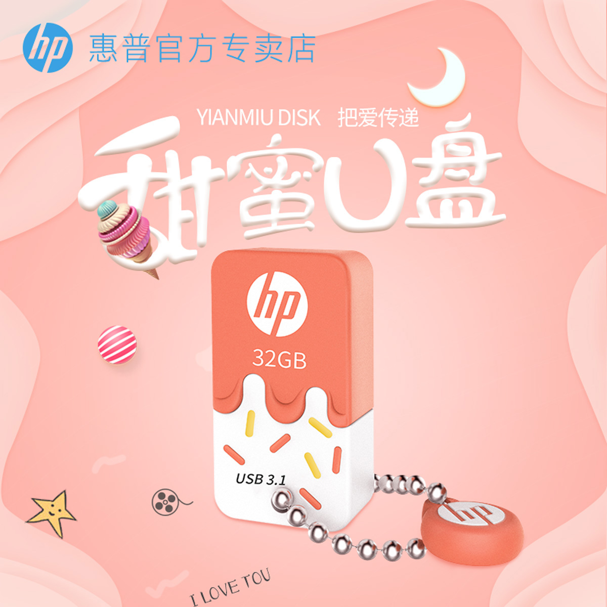 HP HP HP drive 32g mobile phone computer dual use high speed usb3 1 boy and girl cute cartoon music car small USB drive