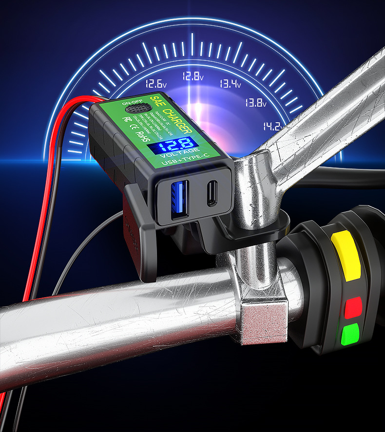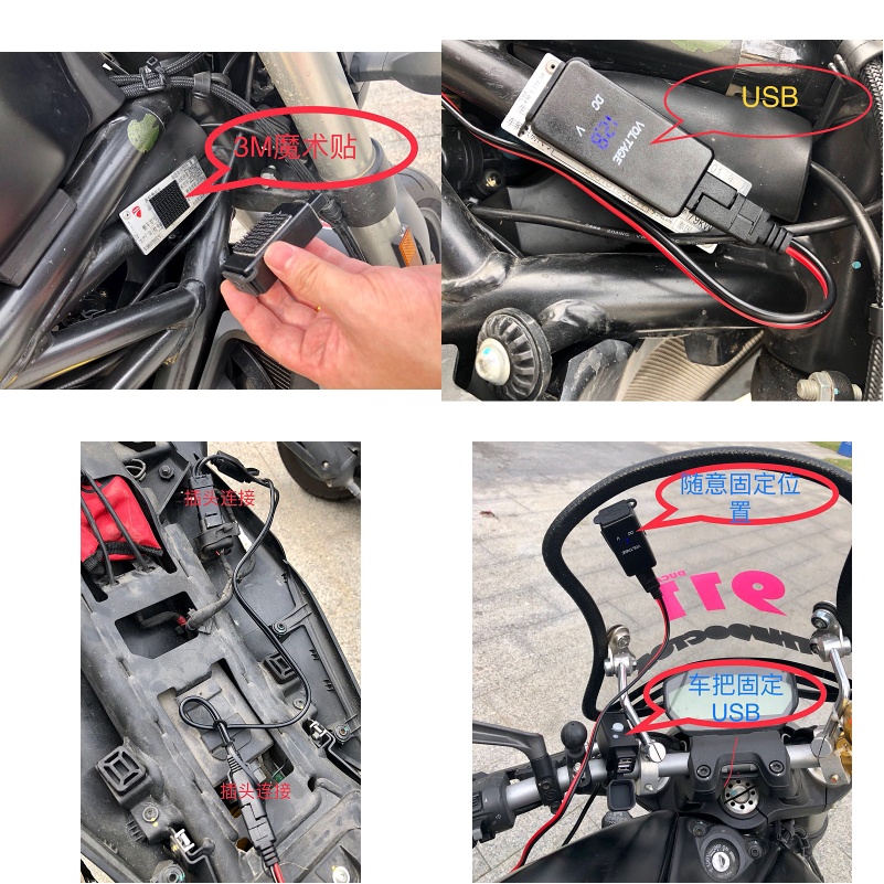 Harley Davidson uses dual USB car-style concealed chargers for phone gps gopro, etc.