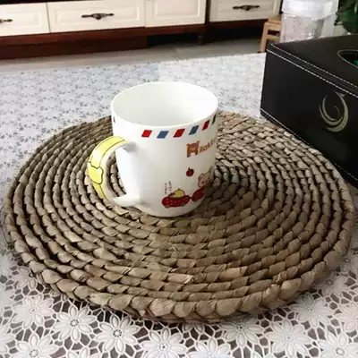 Japanese-style simple grass-woven pastoral placemat coaster heat insulation mat Tea set mat Hand-woven pot mat Bowl mat Round placemat