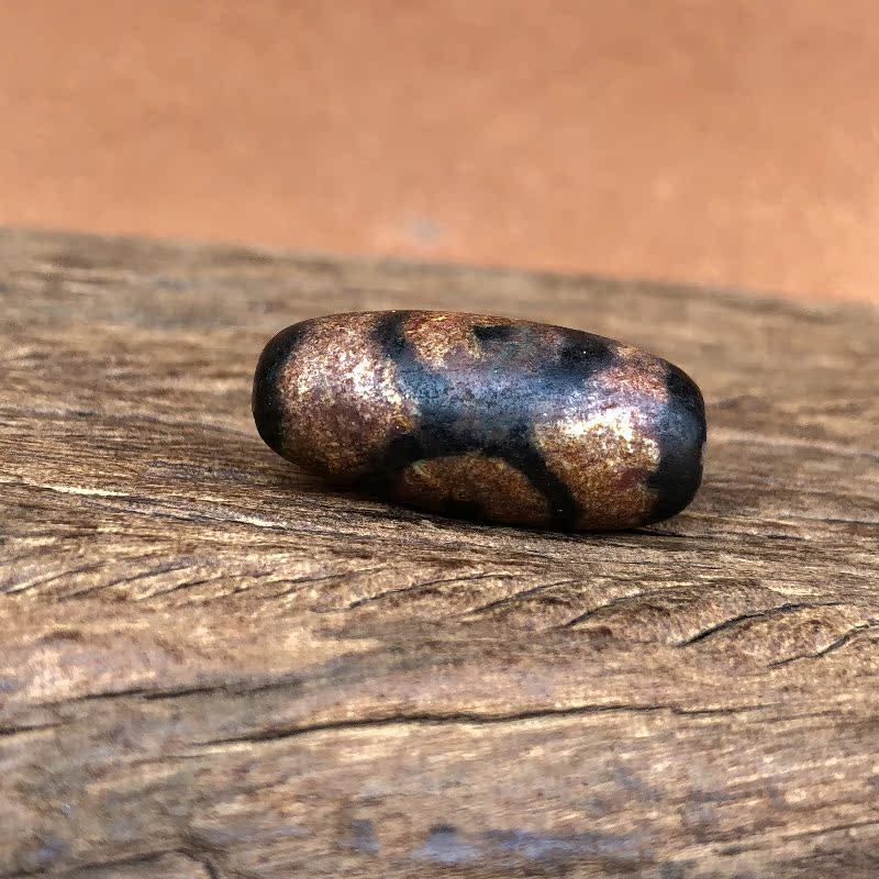 Tibetan Zhangxiong Tianzhu Huya Three-Eyed Dzi Genuine Heavenly Stone Shale Natural Cinnabar Weathering Vicissitudes