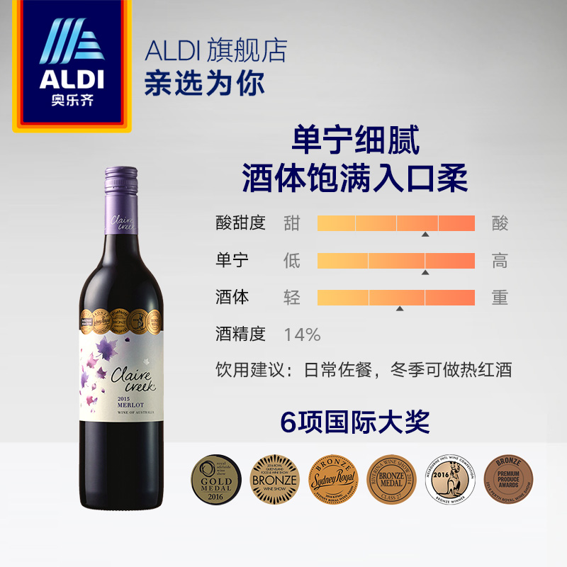 (39 9 seconds kill) ALDI Orozi Australia imported Merlot dry red wine gift banquet 750ml
