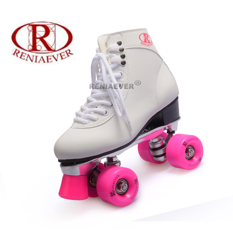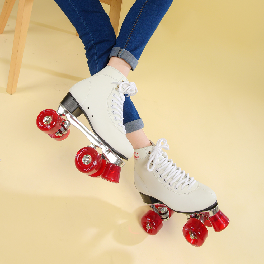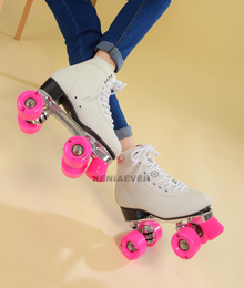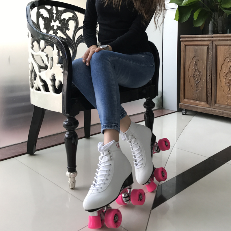 Double row roller skates Women's four-wheeled adult net red roller skates Double row professional metal rack roller skates white powder