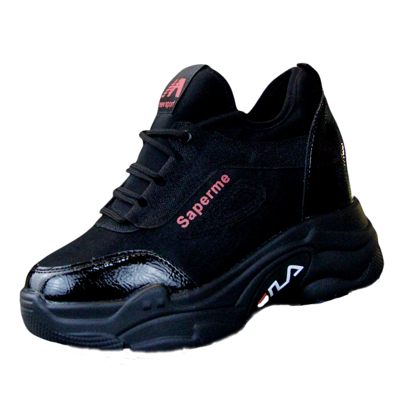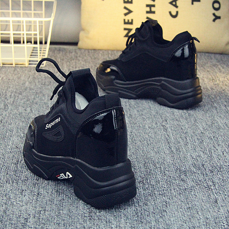 Harajuku retro small black shoes women's internal height Korean version of Joker sneakers chic Han Feng shoes street net red tide shoes