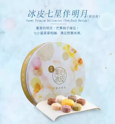 Grain first snow ice moon cake seven stars with bright moon ice skin moon cake snow Orchard * 1 box