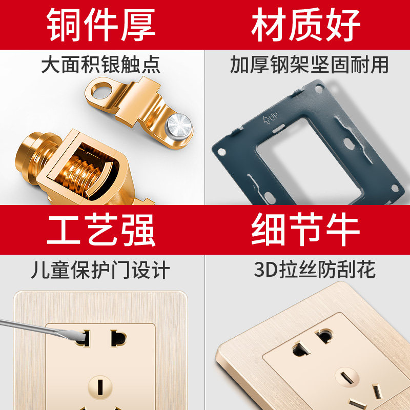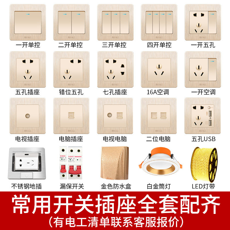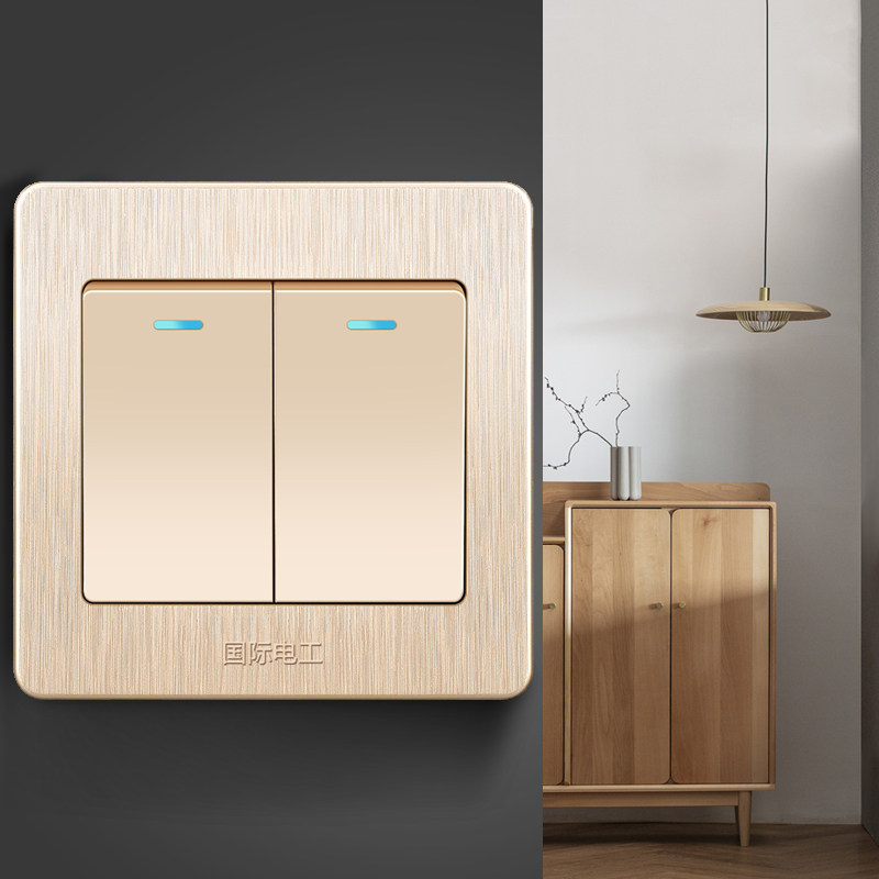 International electrical switch socket panel 86 type household brushed gold double switch light switch power supply two-open multi-control